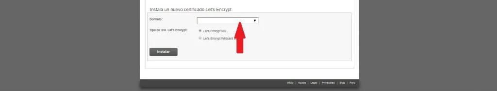 En la siguiente pantalla, desplázate hasta la parte inferior hasta que encuentre la opción llamada Instalar un nuevo certificado Let,s Encrypt «. Haz click en eso.