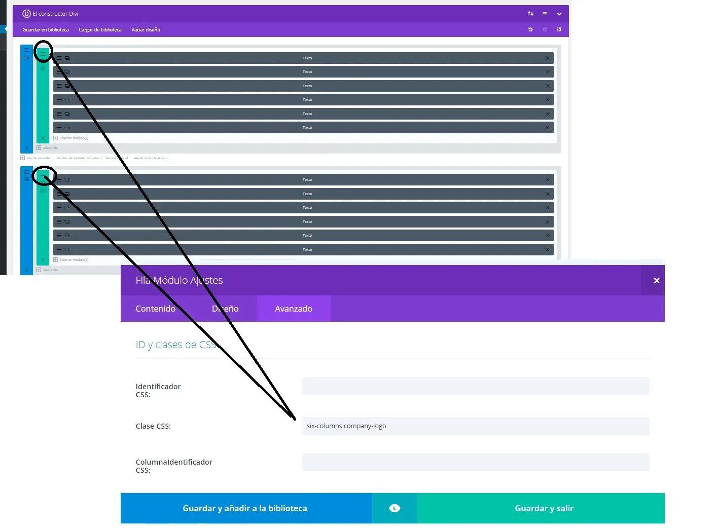 3. Aplicar la clase CSS a las filas de Divi Theme