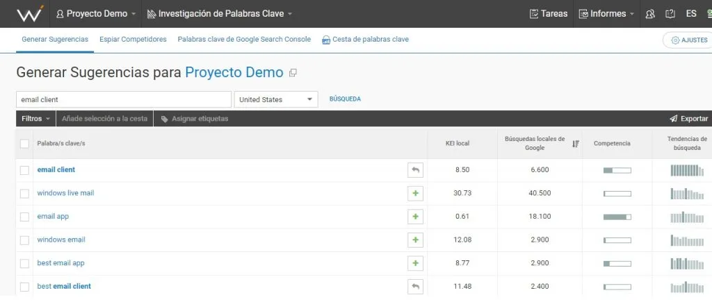 Empecemos abriendo la herramienta de sugerencias de palabras clave de la herramienta con la que trabajamos. En este caso muestro una par de imágenes de 2 diferentes herramientas ahrefs o webceo que sin duda pueden ser unas de las mejores existentes del mercado. También hay otras como semrush, sistrix…